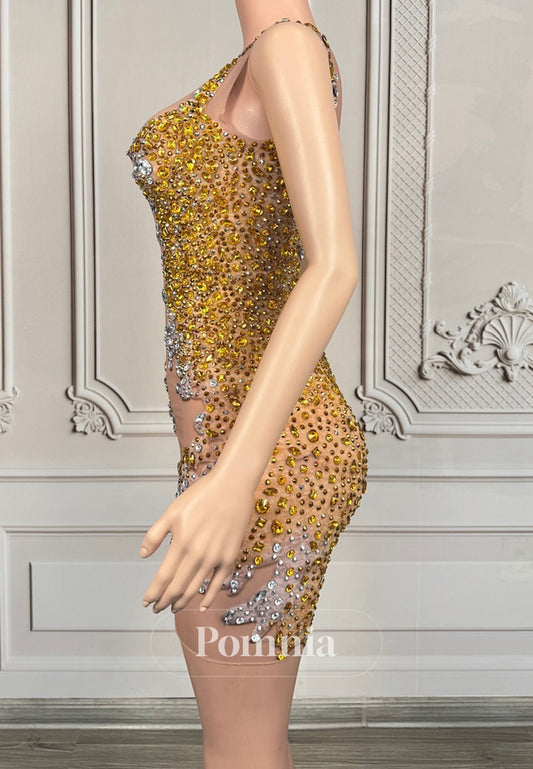 Daffodil Spaghetti Straps Scoop Sequins Short Satin Homecoming Dress