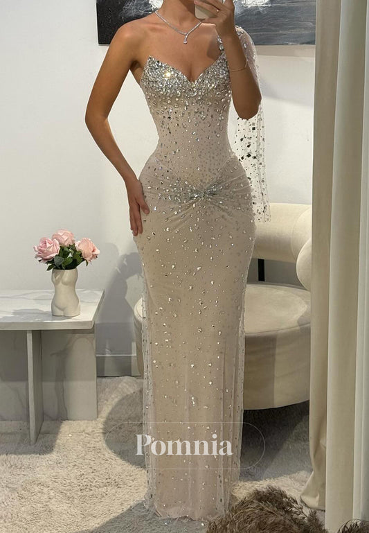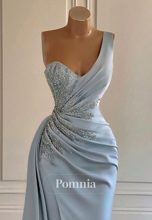 Sparkly One Shoulder Sleeveless Beads Prom Dress