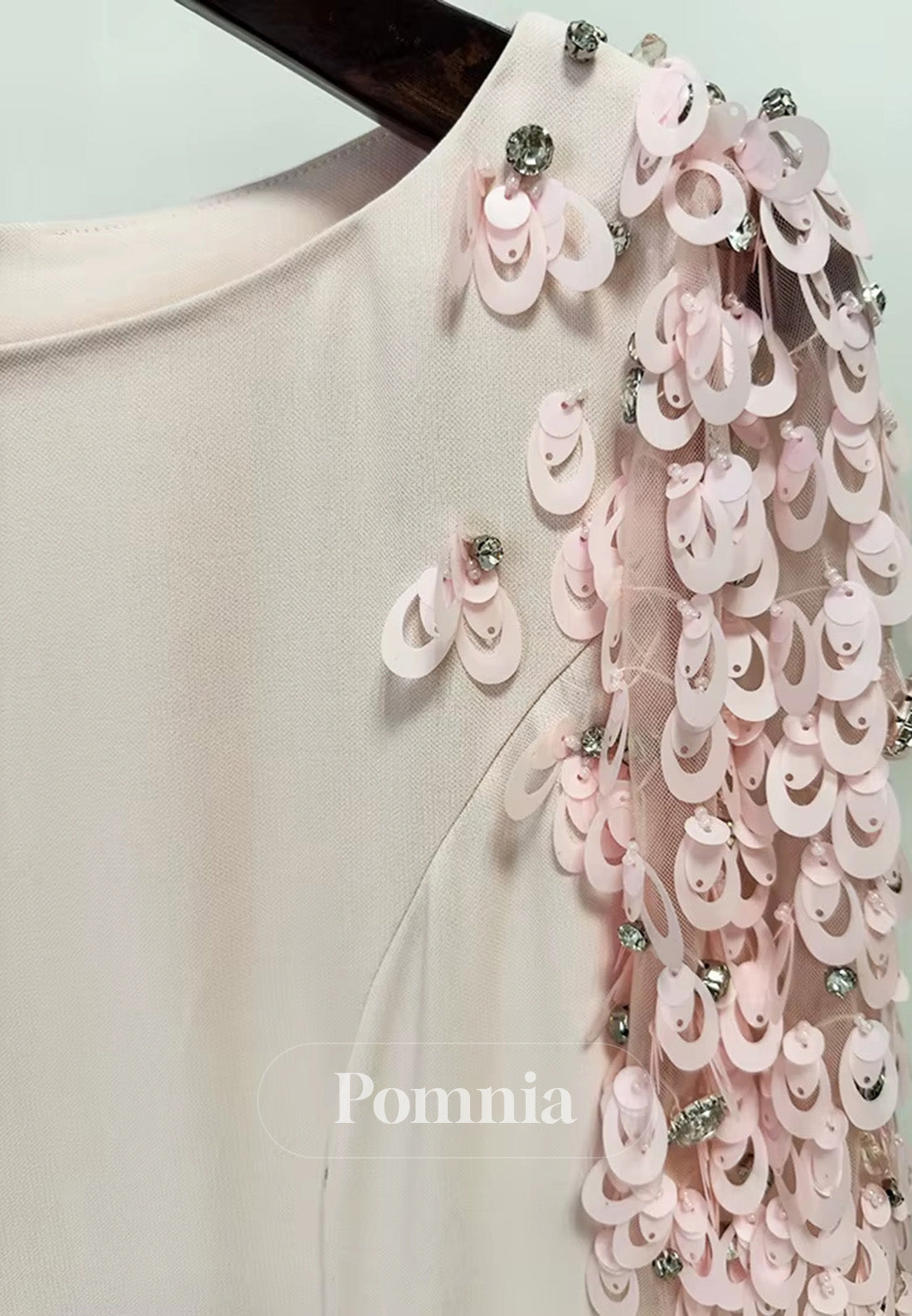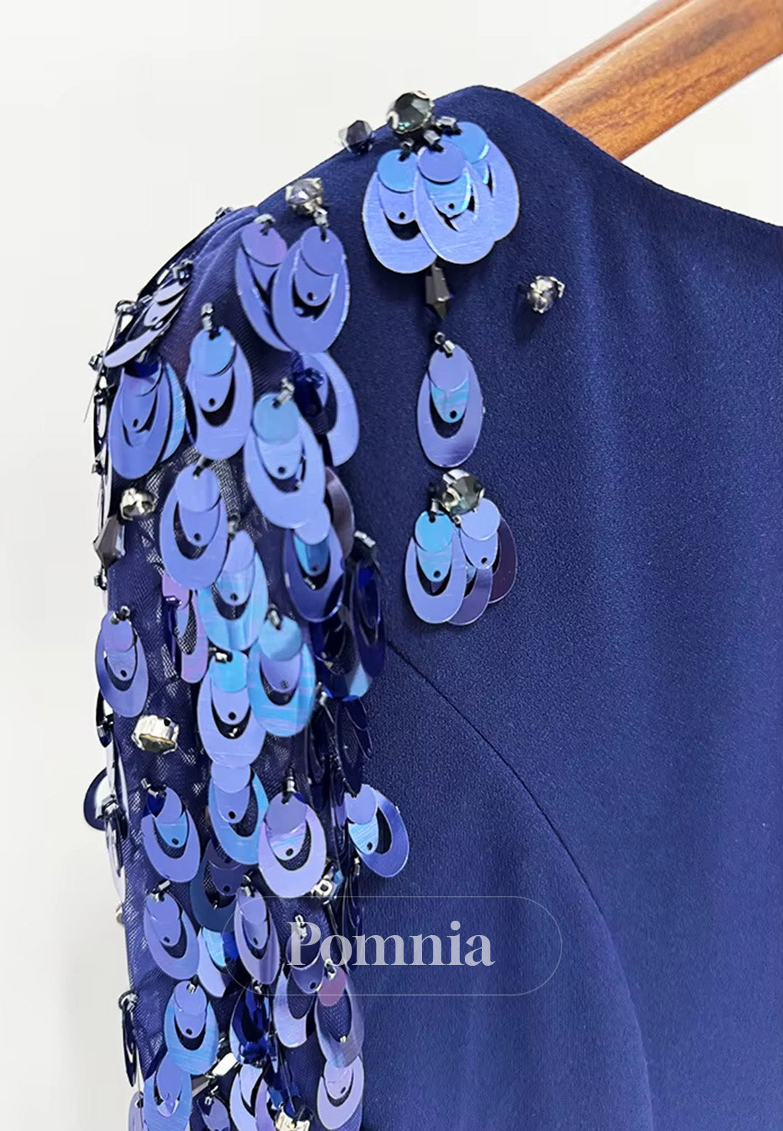 This elegant evening dress features a flattering A-line silhouette with long sleeves and a graceful scoop neckline. Subtle sequins embellish the design, adding refined shimmer without overwhelming its sophisticated simplicity. Crafted for both style and comfort, this dress is ideal for formal occasions that call for timeless elegance and understated glamour.