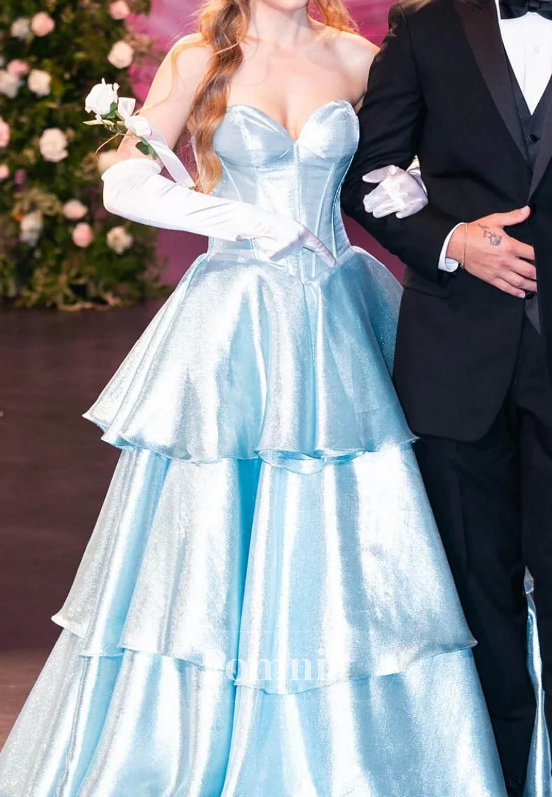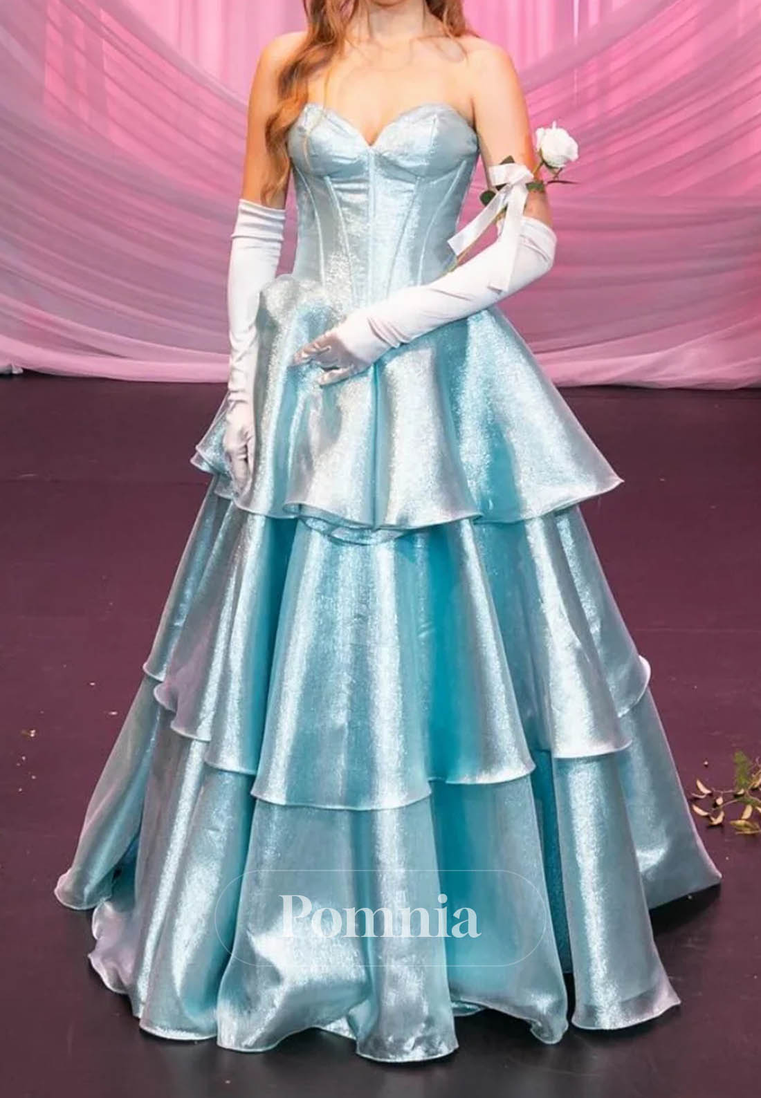Strapless Sleeveless Tiered Back Bow Long Prom Dress