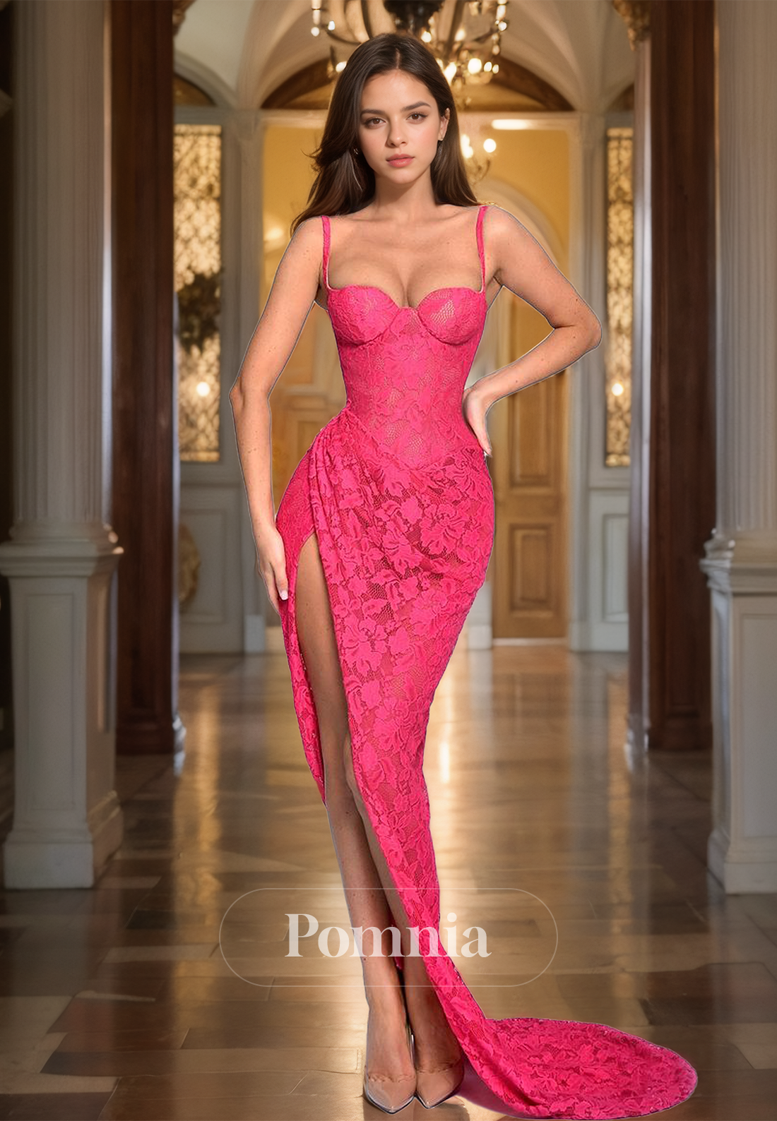 Spaghetti Straps Sweetheart Prom Dress with Side Slit Lace Corset Tulle Evening Party Dress
