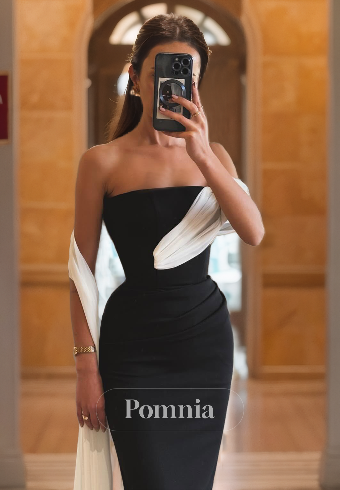 This elegant Black Satin Prom Party Dress features a flattering Strapless Sleeveless Sheath design with a Corset for a perfect fit. The sleek black color adds a touch of sophistication to any event. Perfect for prom, weddings, and other special occasions.
