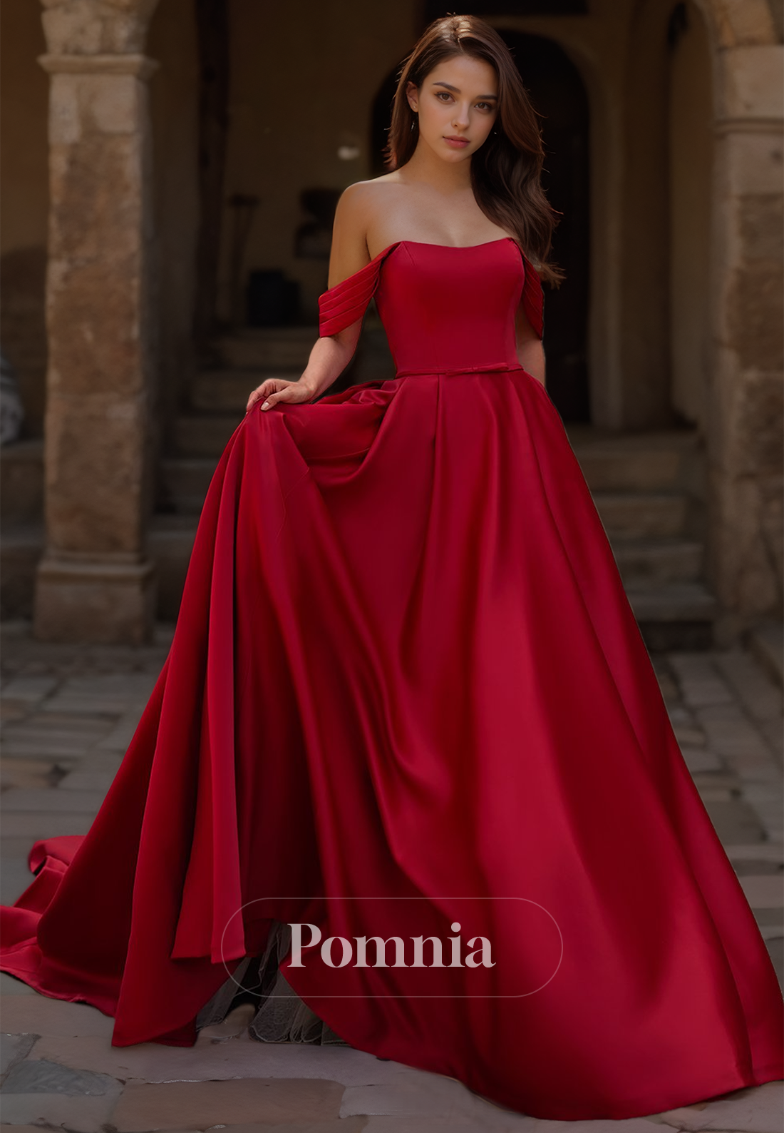 This glamorous A-Line Off-Shoulder Ruched Empire-Waist Court Train Satin Wedding Dress is expertly crafted with a flattering silhouette, featuring ruched detailing and an elegant train. The luxurious satin fabric adds a touch of sophistication to your special day, making you feel like a true bride.