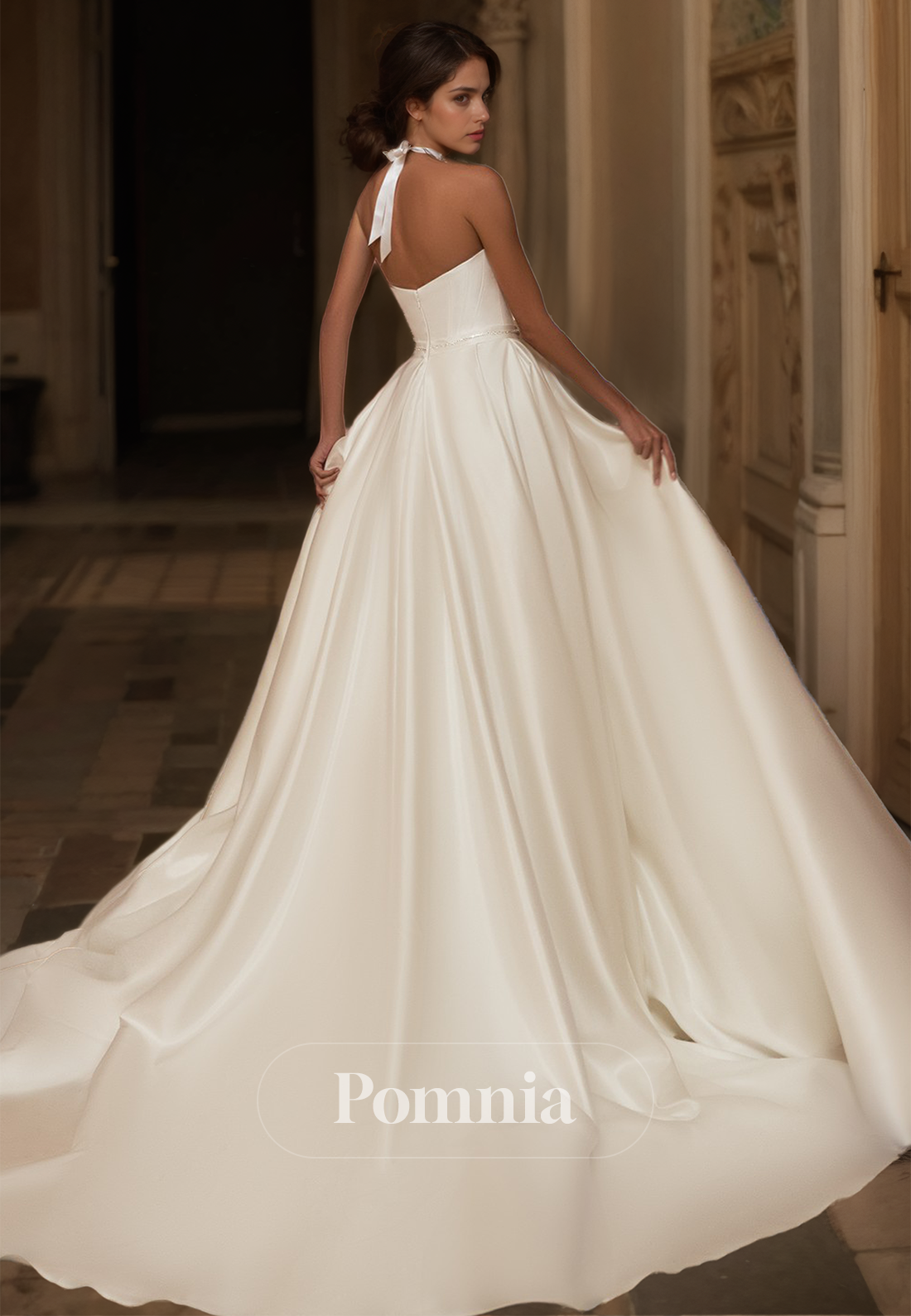 This elegant A-Line wedding dress features a Strapless design, Backless cut, and a delicate Bowknot detail. The Side Slit adds a touch of sophistication to the luxurious Satin fabric, perfect for any bride looking for a stylish yet timeless look on her special day.