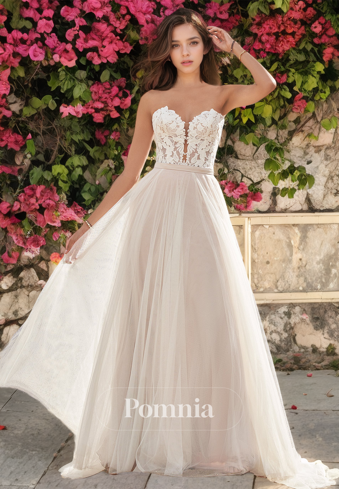 Elegant A-Line Sleeveless Sweetheart Detachable Lace Wedding Dress