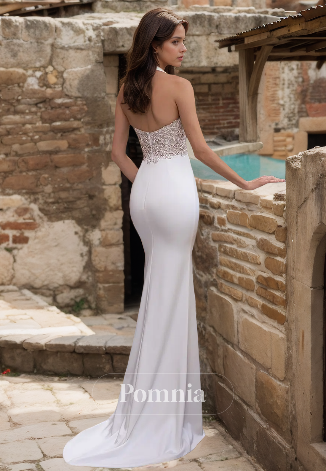 This stunning Halter Sleeveless Empire-Waist Backless Satin Mermaid Wedding Dress is expertly crafted for a glamorous and elegant look. The halter neckline and empire waist create a flattering silhouette, while the backless design adds a touch of sensuality. Made with luxurious satin fabric, this dress is perfect for a sophisticated and unforgettable wedding day.
