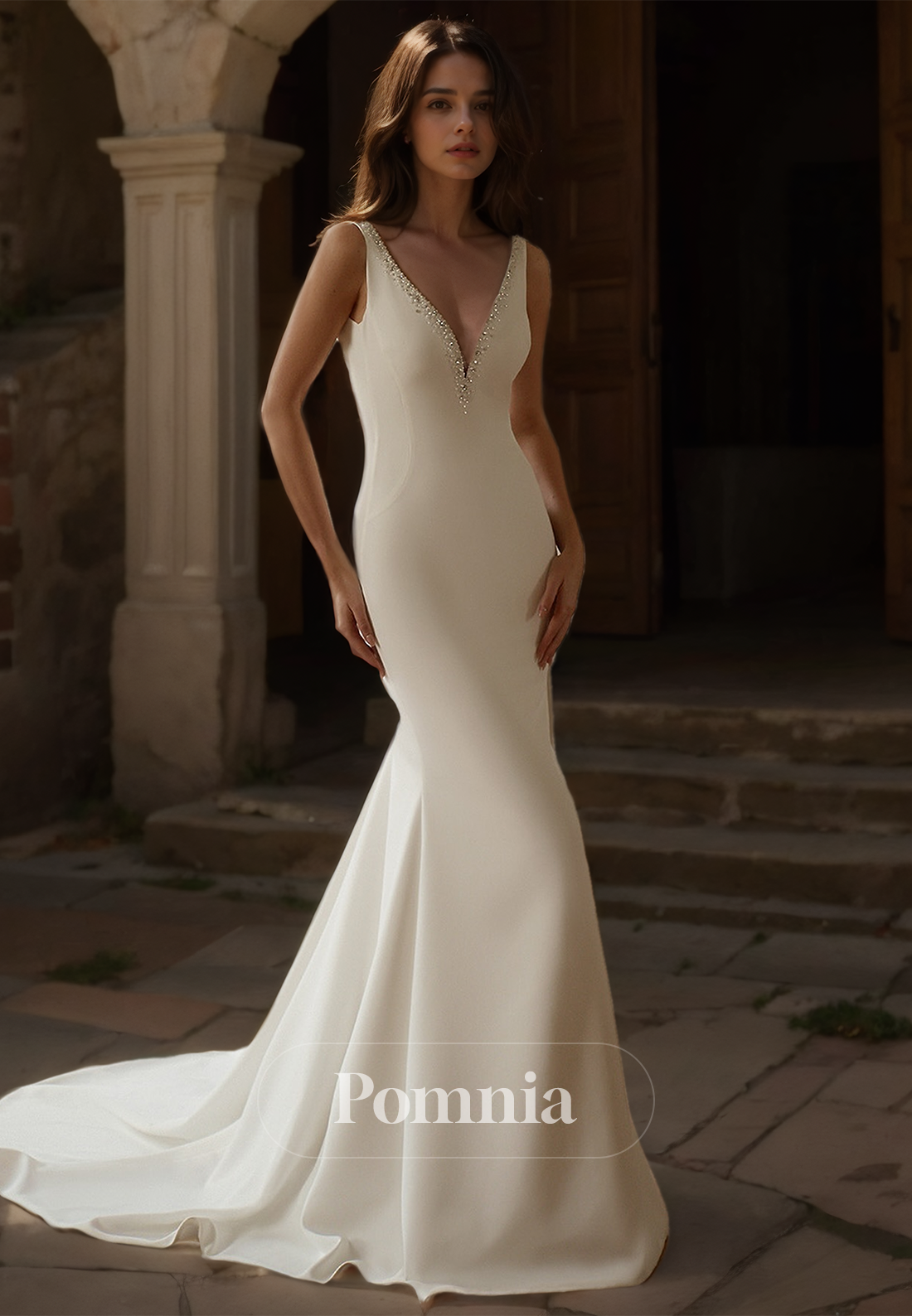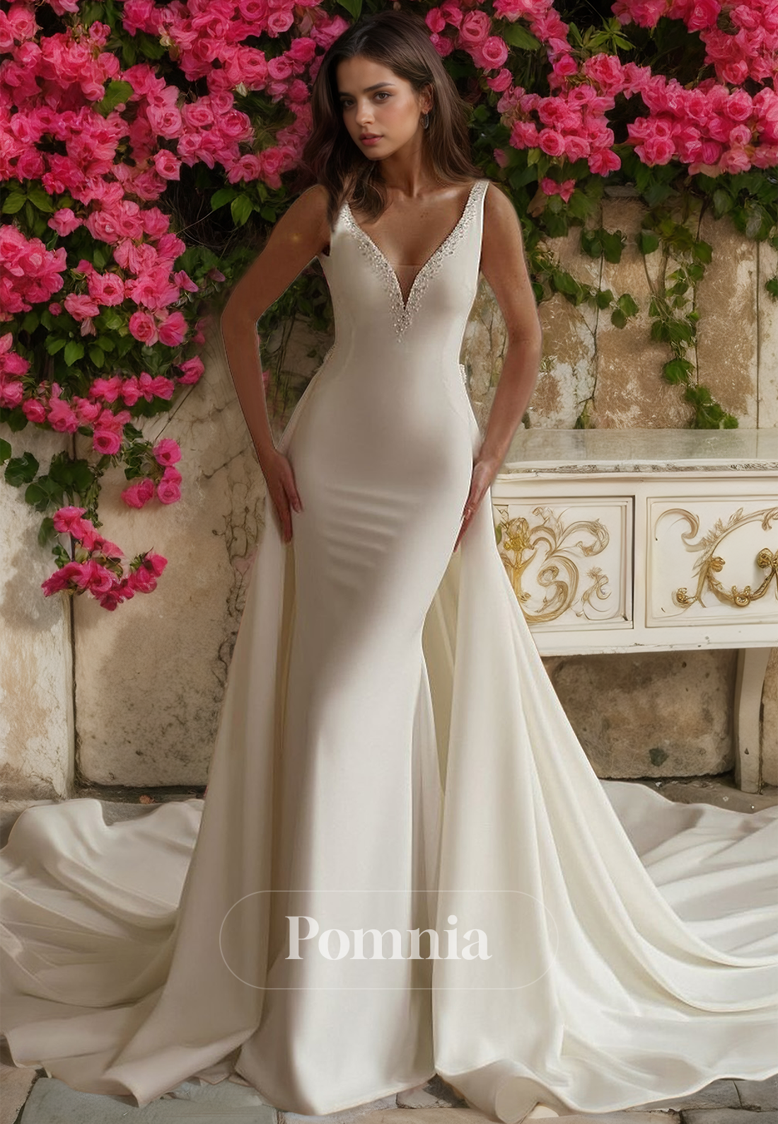 This Simple Spaghetti Straps V-Neck Backless Detachable Satin Wedding Dress is the perfect choice for the modern bride. With its elegant and minimalistic design, this dress offers a timeless and sophisticated look. The detachable satin fabric allows for versatility and comfort, making it the ideal dress for any wedding celebration.