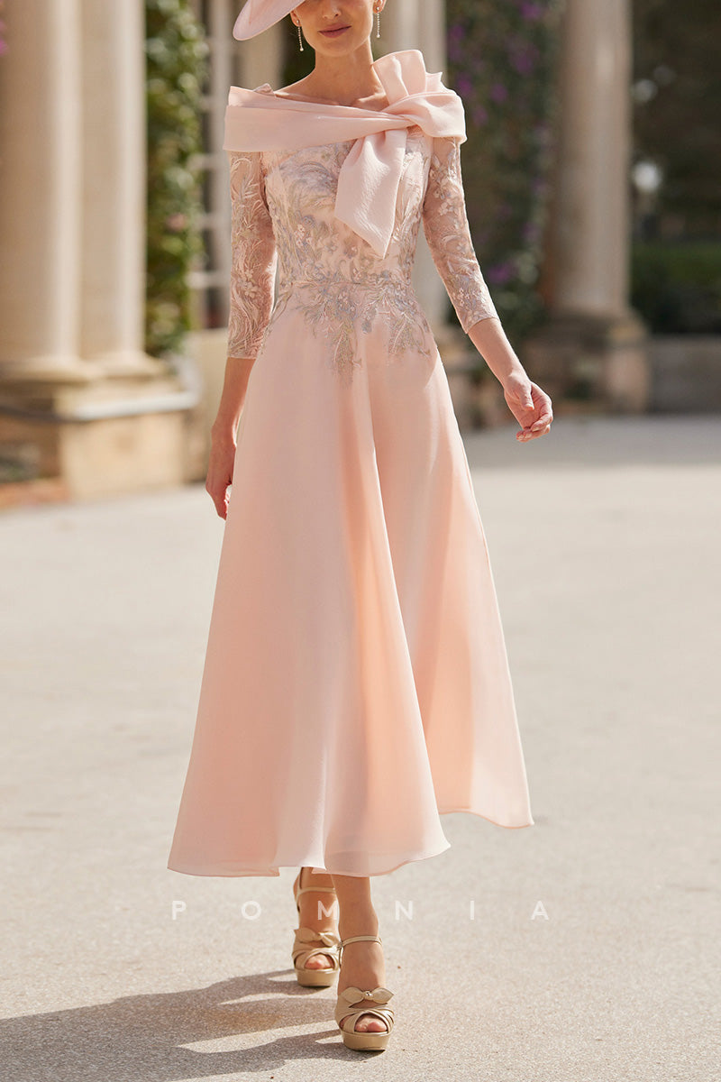 P9080 - A-Line Empire-Waist Appliques Long Sleeves Mother of Bride Dress