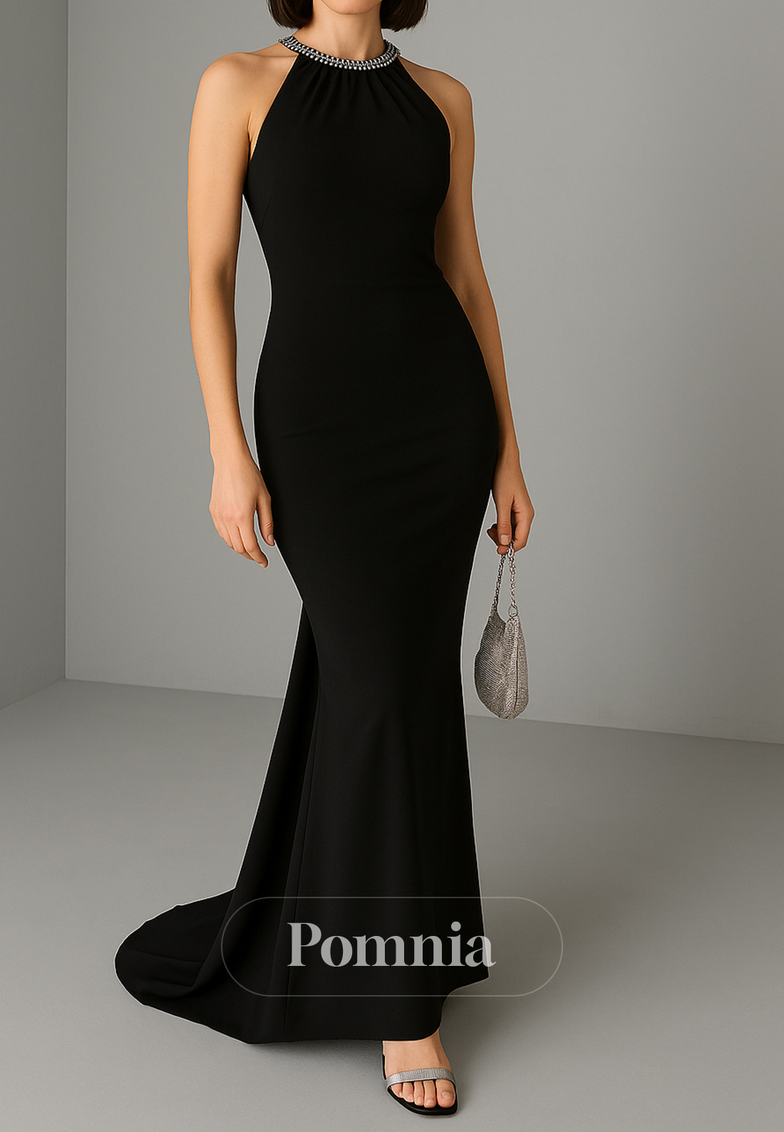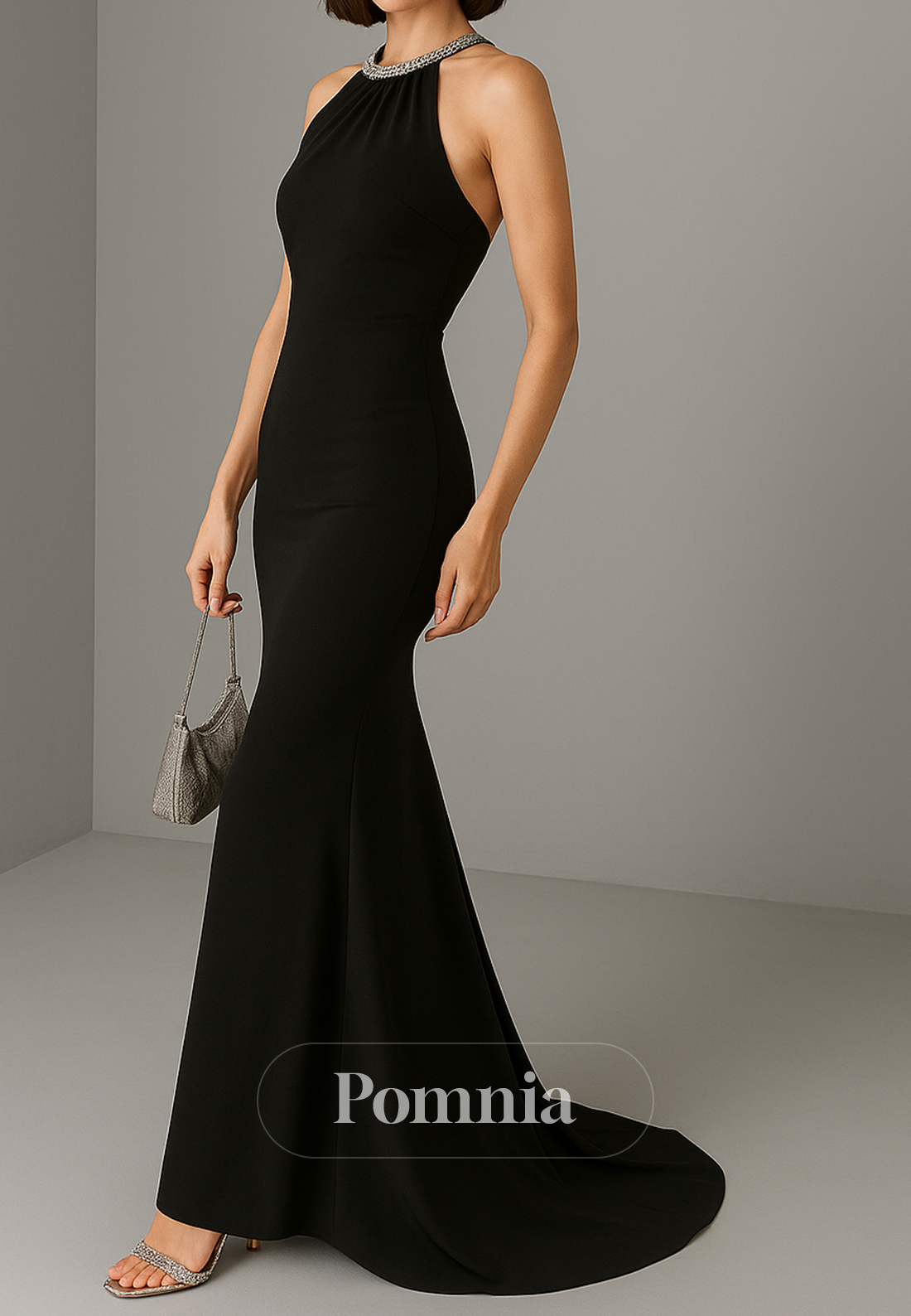 The Simple Halter Sleeveless Sheath Satin Evening Dress offers a sleek and refined silhouette with its form-fitting sheath design. The halter neckline elegantly frames the shoulders, while the sleeveless cut ensures comfort and ease of movement. Crafted from smooth satin, this dress delivers a subtle sheen that enhances its sophisticated appeal, making it an ideal choice for upscale evening occasions.