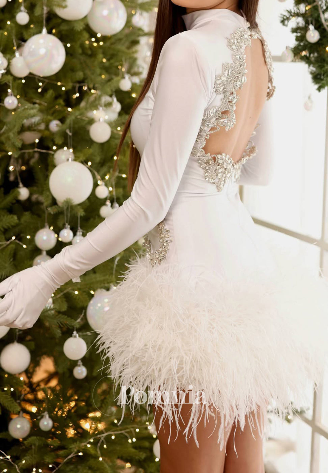 White Long Sleeves High Neck Backless Mini Homecoming Dress