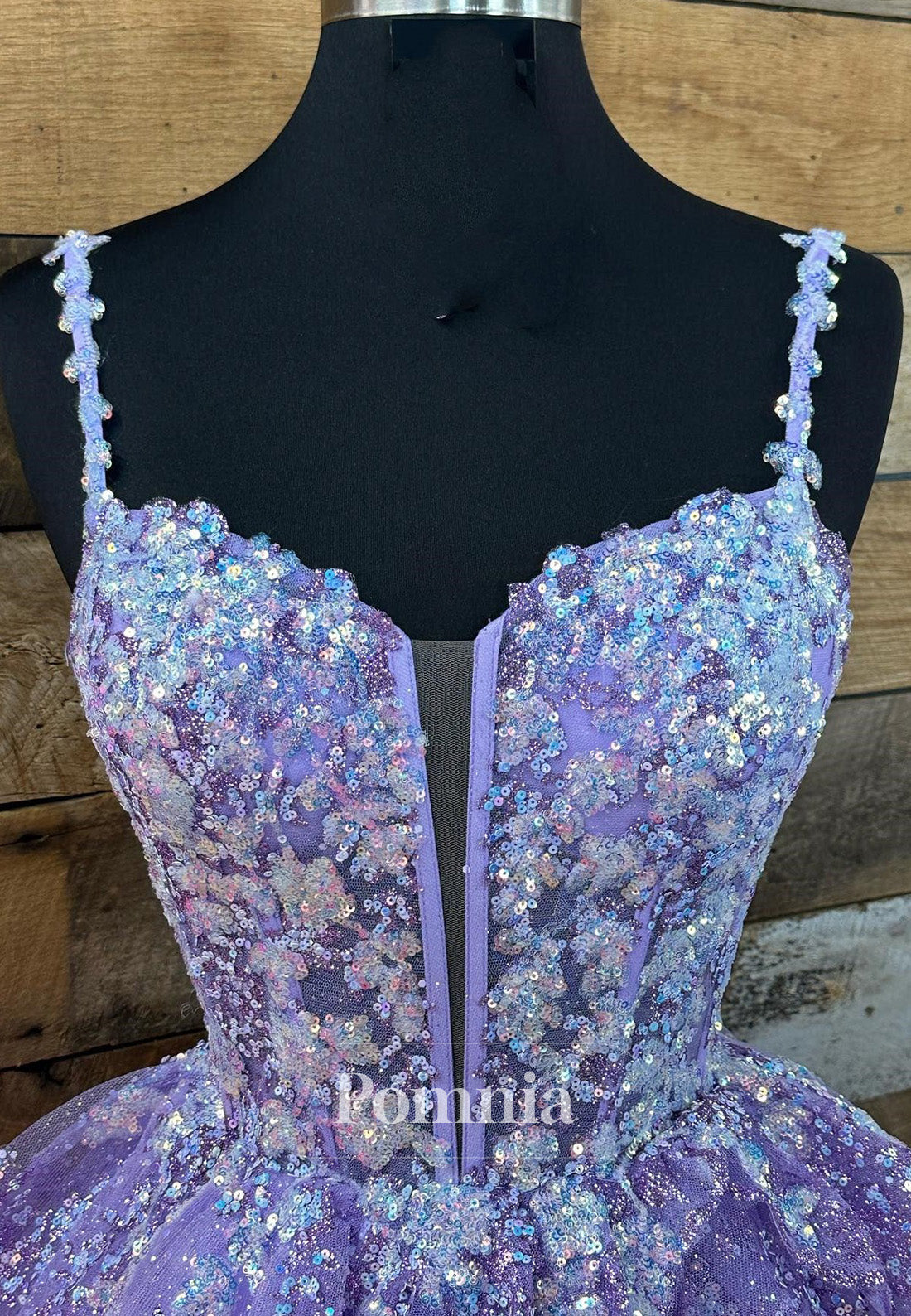 The Charming A-Line Tulle Sequin Lace-Up Tiered Short Homecoming Dress combines delicate tulle with sparkling sequins for a refined yet eye-catching look. Its lace-up design ensures a tailored fit, while the tiered skirt adds dynamic volume and movement. This dress delivers a sophisticated silhouette perfect for celebrating your special homecoming night with elegance and charm.