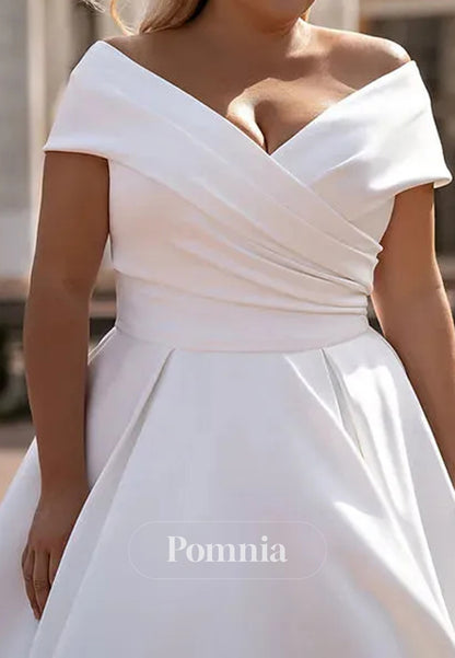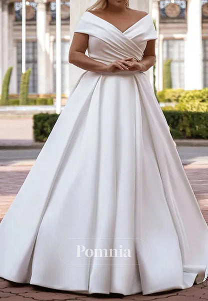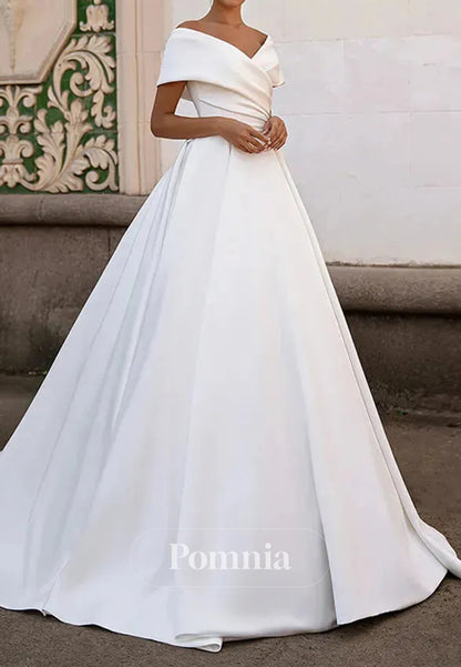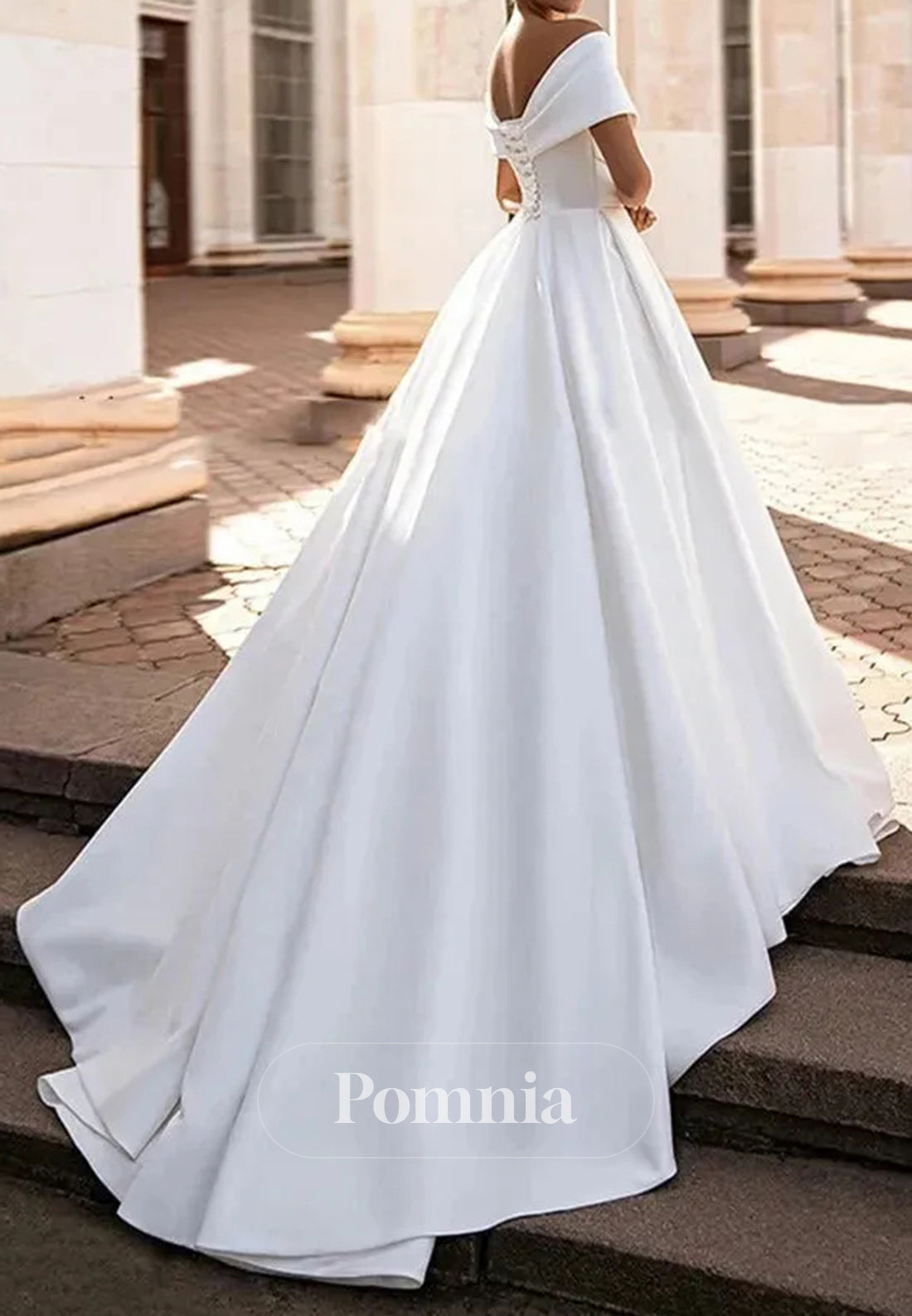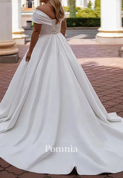 Gorgeous Ball Gown Off-Shoulder Satin Sweep Train Corset Wedding Dress