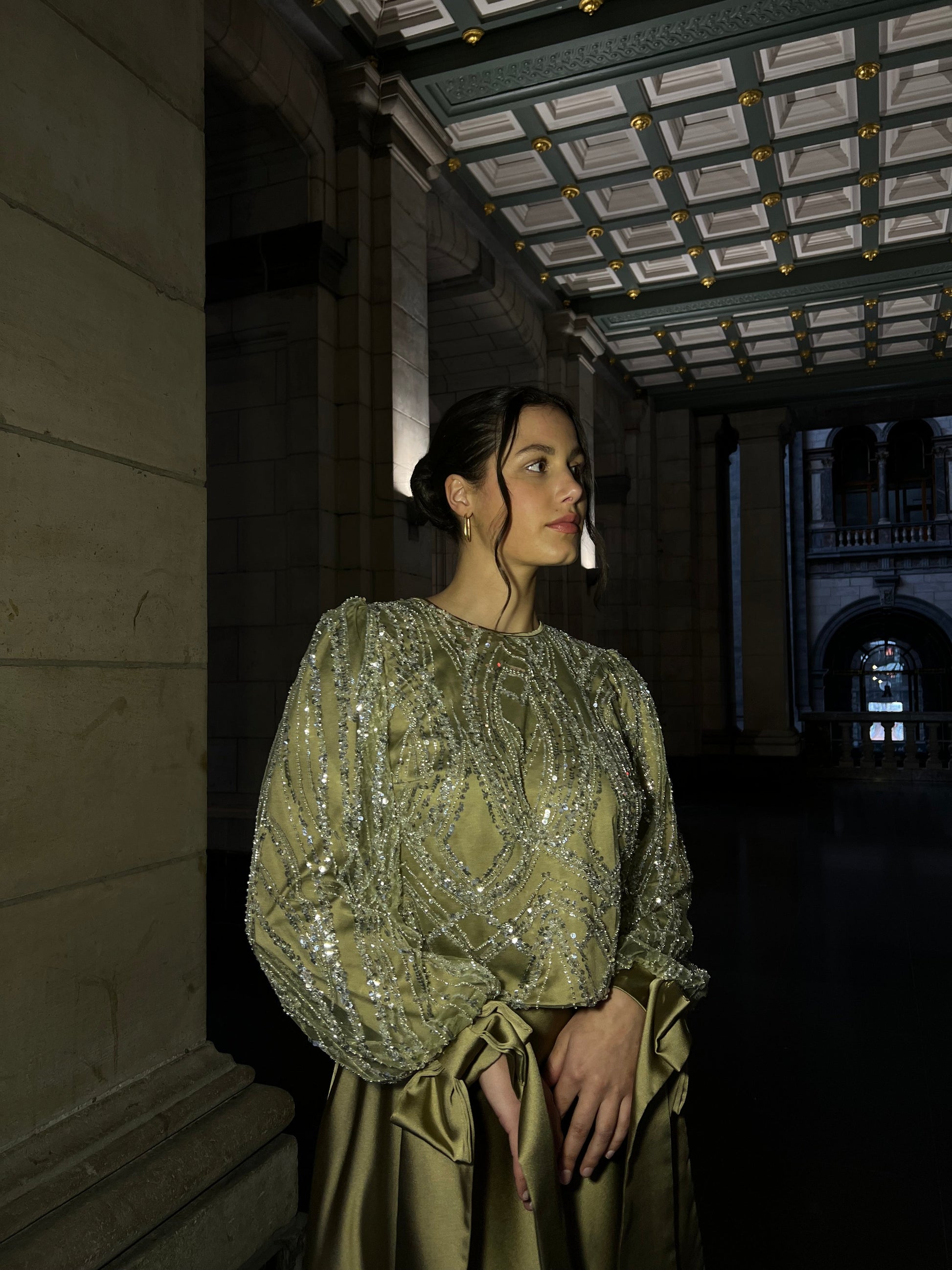 Elevate your formal wardrobe with this sophisticated green A-line evening dress. The classic bateau neckline frames the shoulders beautifully, while long sleeves provide elegant coverage and timeless appeal. The flowing A-line silhouette flatters all figures, creating a graceful drape that moves with ease. Crafted for refined occasions, this dress combines understated luxury with impeccable tailoring, making it an essential choice for galas, formal dinners, and special events where polished elegance matters.