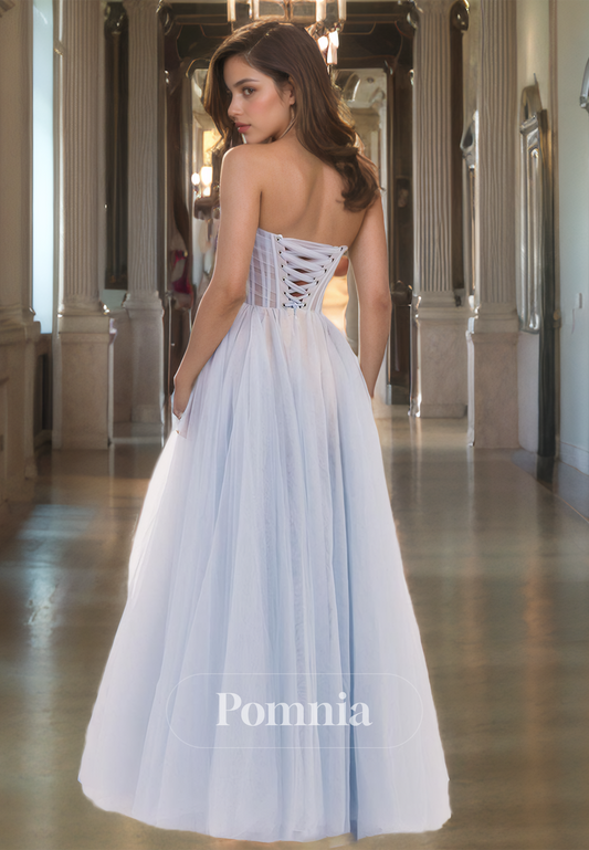 A-Line Spaghetti Straps Sweetheart Empire-Waist Sleeveless Long Prom Dress
