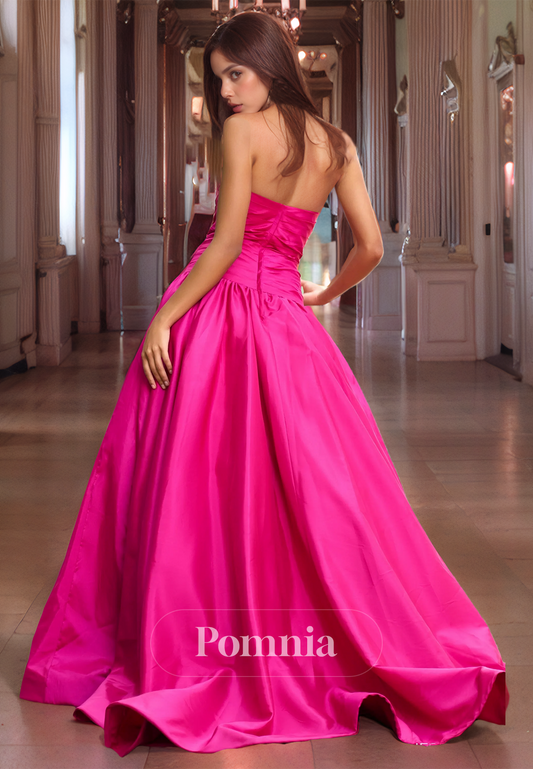 A-Line Empire-Waist Sweetheart Sleeveless High Slit Satin Long Prom Dress