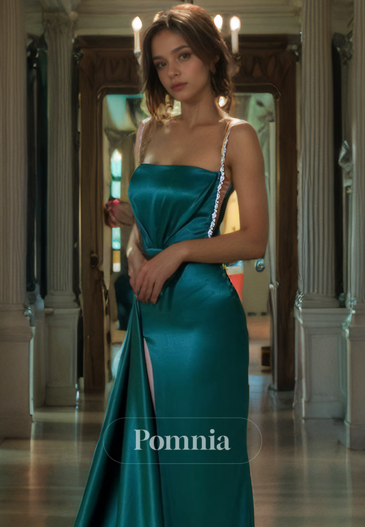 Sheath/Column Straps Square Beaded Empire-Waist Pleated Prom with Slit
