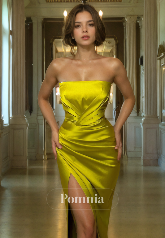 Mermaid/Trumpet Sleeveless High Slit Pleated Satin Long Prom Dress