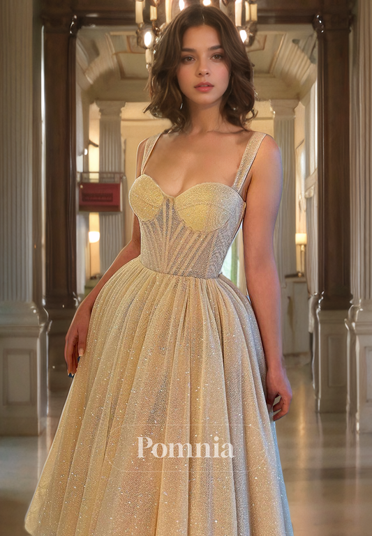 A-Line Spaghetti Straps Sweetheart Empire-Waist Sleeveless Long Prom Dress