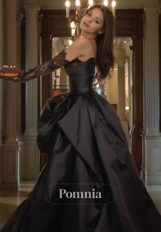 Off-Shoulder Sweetheart Sleeveless Pleats Side Slit Satin Long Prom Dress