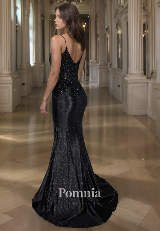 Spaghetti Straps V-Neck Sleeveless Sequined Mermaid Long Prom Formal Dress