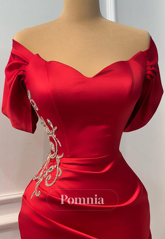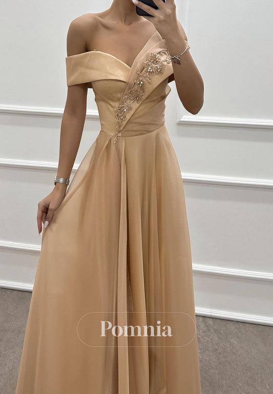 P1237 - Off-Shoulder Pleats Side Split Sleeveless Prom Party Evening Dress