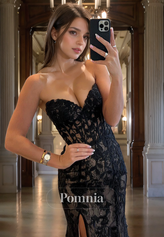 P1239 - Deep V-Neck Strapless Sleeveless High Slit Formal Evening Prom Dress