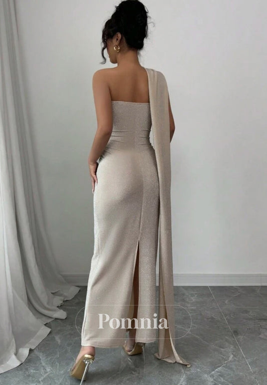 P1232 - Fitted One Shoulder Side Slit Ruched Prom Evening Formal Dress