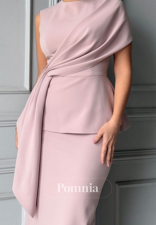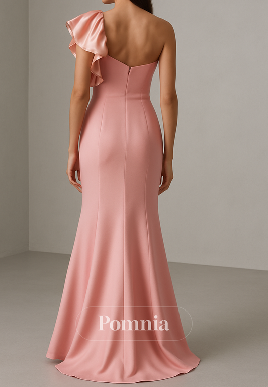 Blushing Pink One Shoulder Sleeveless A-Line Evening Dress
