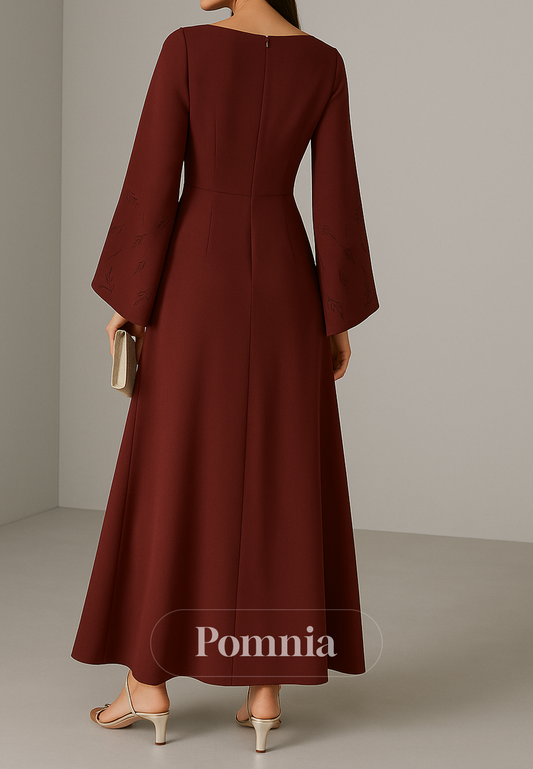 Simple Long Sleeves Scoop A-Line Evening Dress