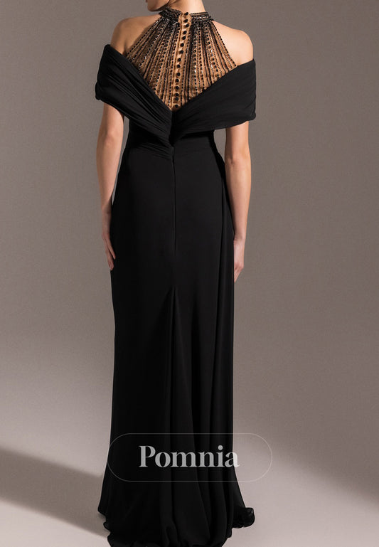 Black Off-Shoulder Sleeveless Sheath Evening Dress
