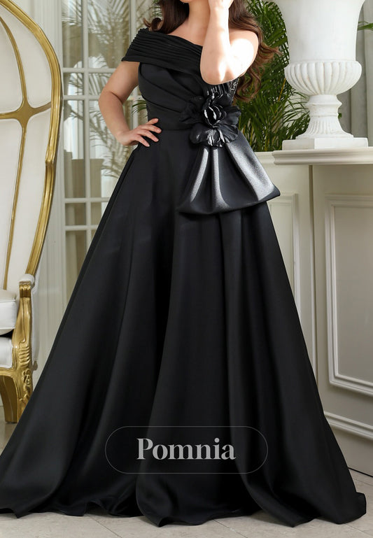 Black Off-Shoulder Sleeveless Satin Evening Dress