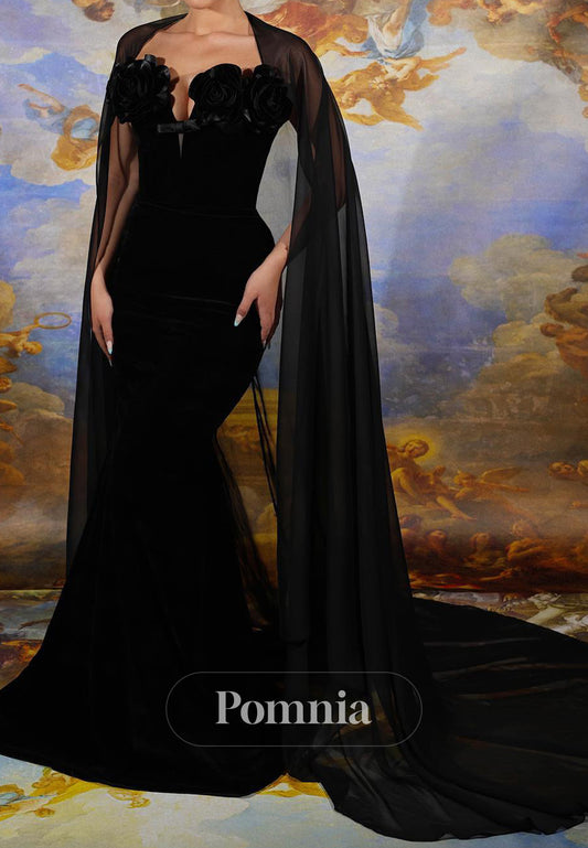 Black Scoop Strapless Sleeveless Mermaid Evening Dress