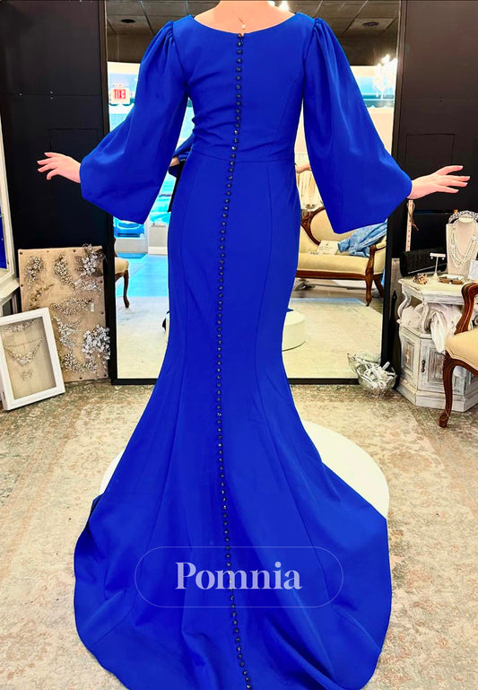 Royal Blue Long Sleeves V-Neck Mermaid Mother of the Bride Dress