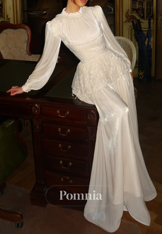 Elegant Long Sleeves High Neck Empire-Waist Evening Dress