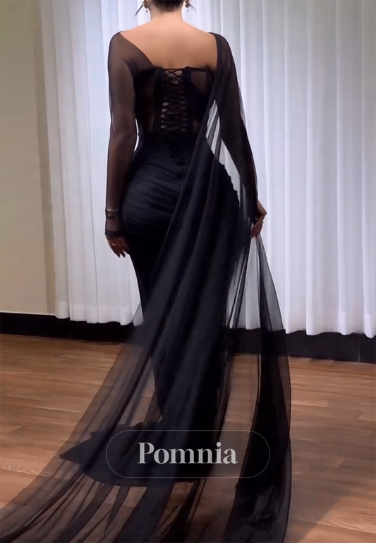Black Long Sleeves Asymmetrical A-Line Prom Dress