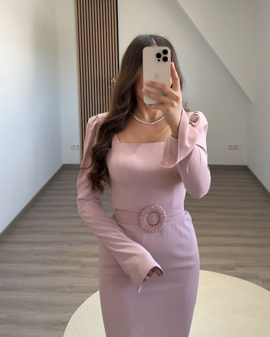 Em promoçãoElegant Long Sleeves Square A-Line Evening Dress