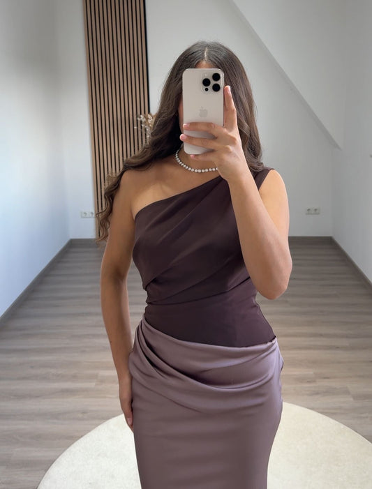 Em promoçãoLong Sleeves One Shoulder Ruched Evening Dress