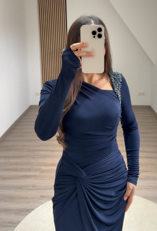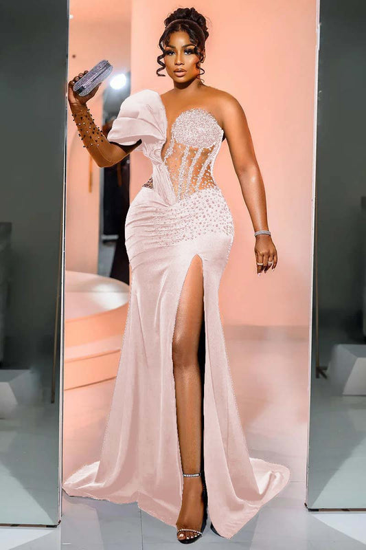 One Shoulder Long Sleeve Long Mermaid Prom Dress With Beading