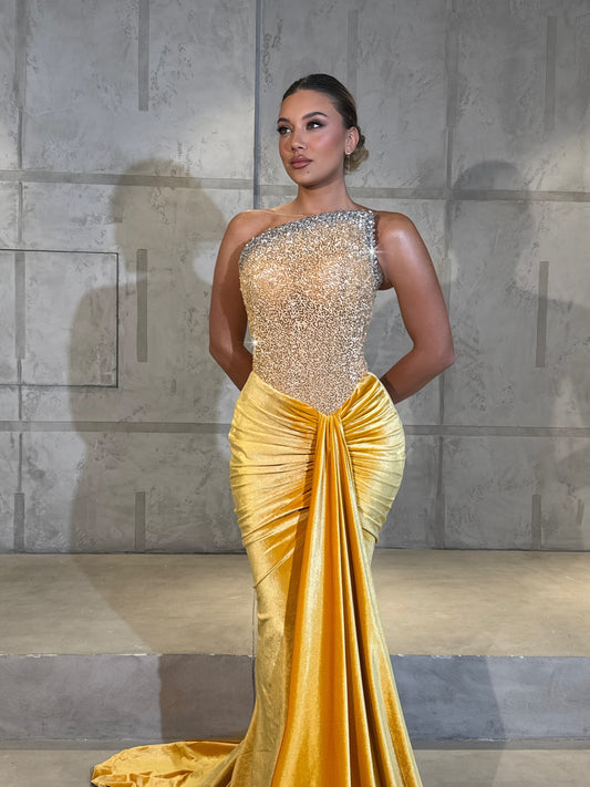 Golden Pearl Draped Gown