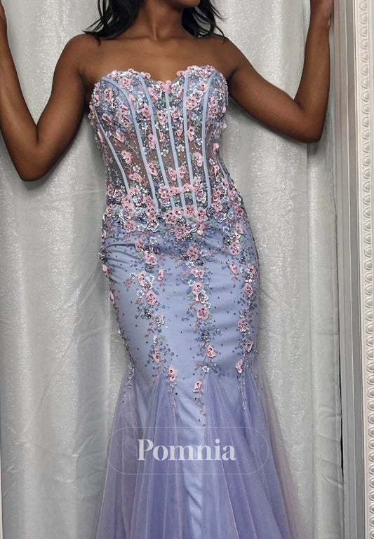 Mermaid Evening Dress Appliques Corset Backless Prom Dress