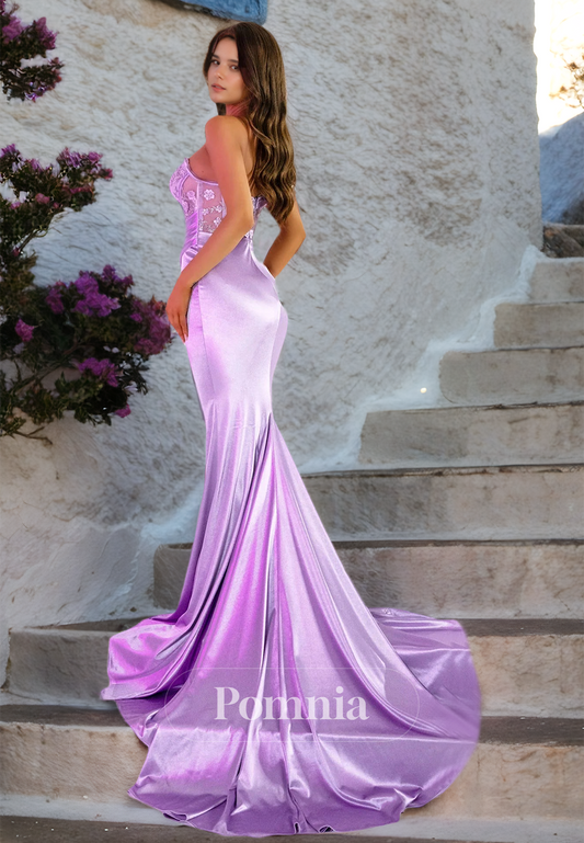 Charming Mermaid Strapless Sleeveless Satin Prom Dress with Slit