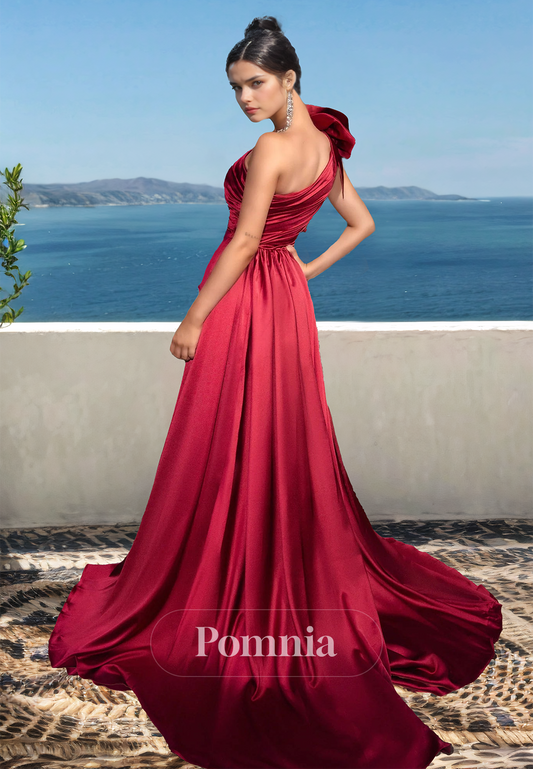 Burgundy One Shoulder Sleeveless Prom Dress with Slit Ruched Evening Party Dress