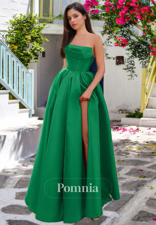Simple Strapless Sleeveless Prom Dress with Slit Empire-Waist Evening Party Dress
