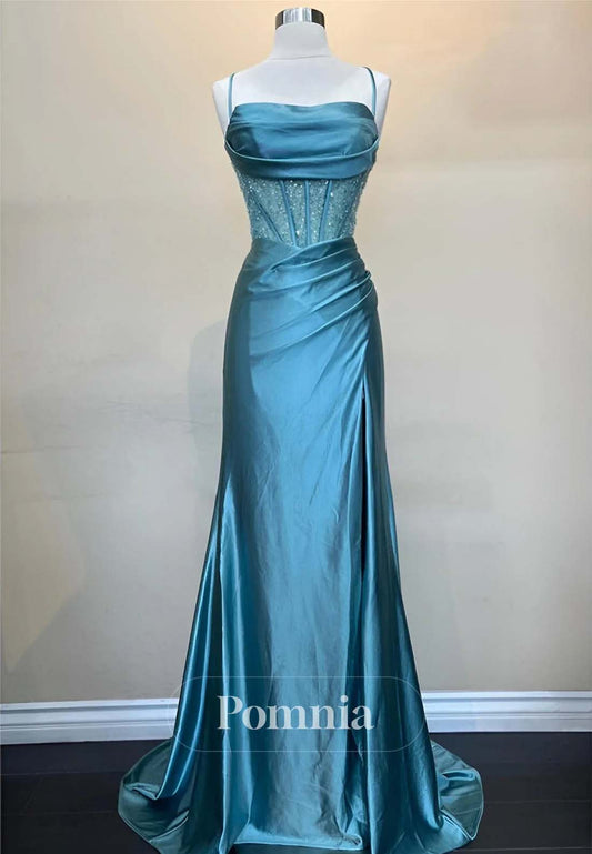 Mermaid Spaghetti Straps Corset Prom Dress with Split