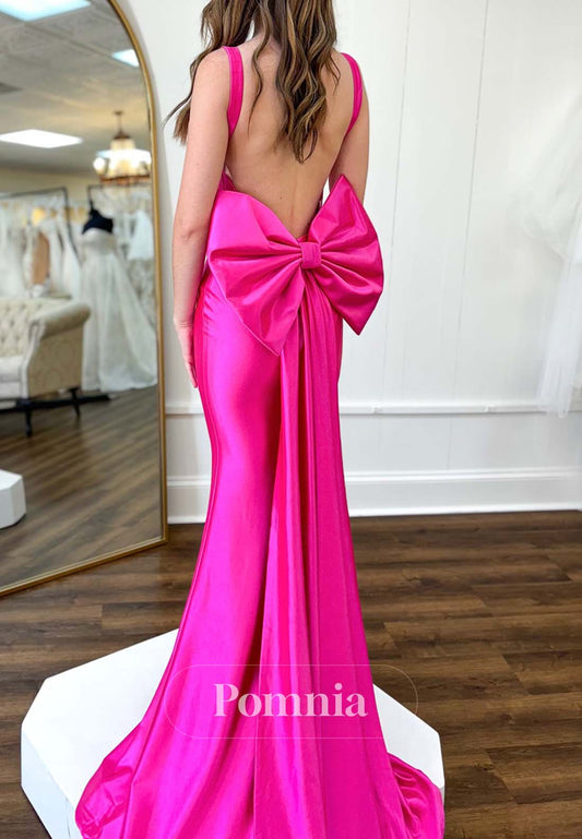 Fuchsia Spaghetti Straps Scoop Prom Dress with Bowknot Backless Party Dress