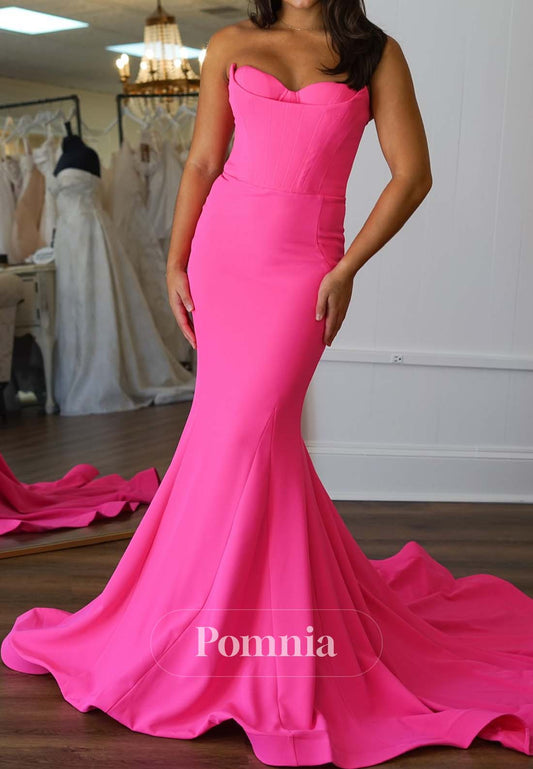 Simple Sleeveless Strapless Mermaid Ruched Prom Dress