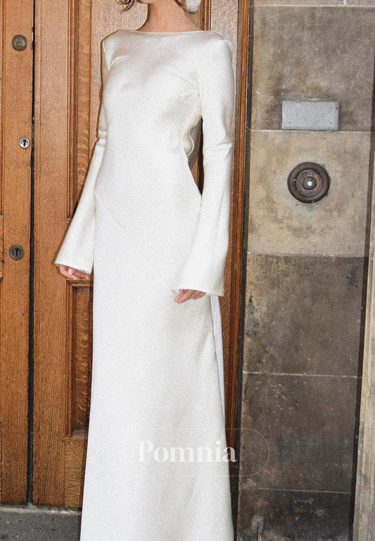 Simple Long Sleeves Scoop Backless Satin Wedding Dress