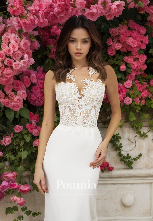 Charming Lace Corset Tulle Scoop Sleeveless Mermaid Wedding Dress