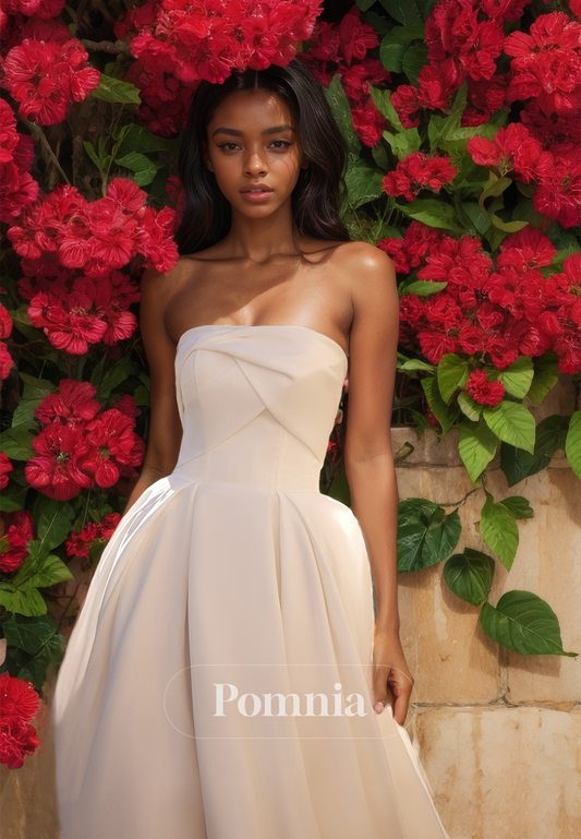 Simple A-Line Strapless Sleeveless Empire-Waist Slit Satin Wedding Dress