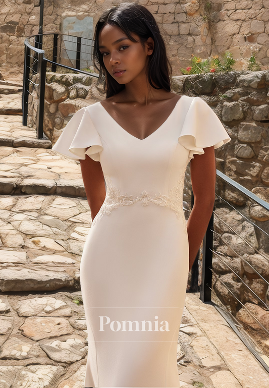 Chic A-Line V-Neck Cap Sleeves Sweep Train Corset Satin Mermaid Wedding Dress